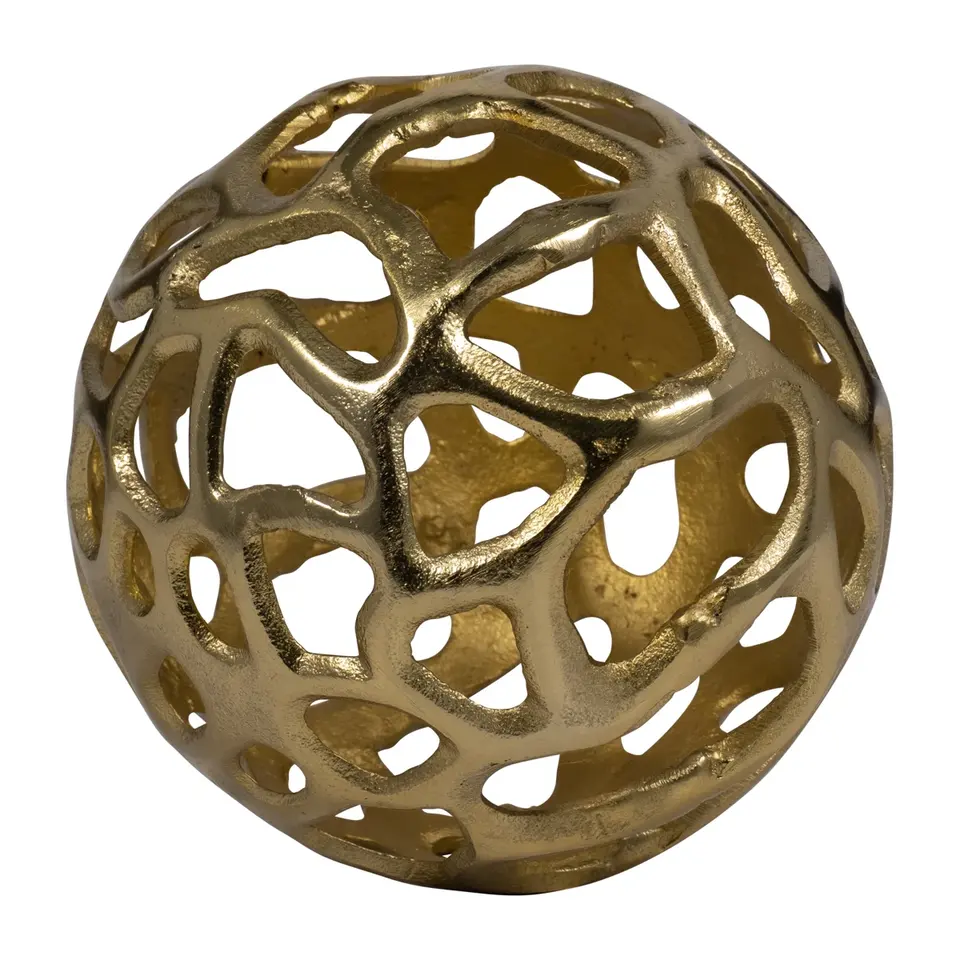 Antique Gold Plated Aluminium Metal Ball Sphere Modern Polished Sculpture for Home Decor Cutout Abstract Orb Tabletop Accent