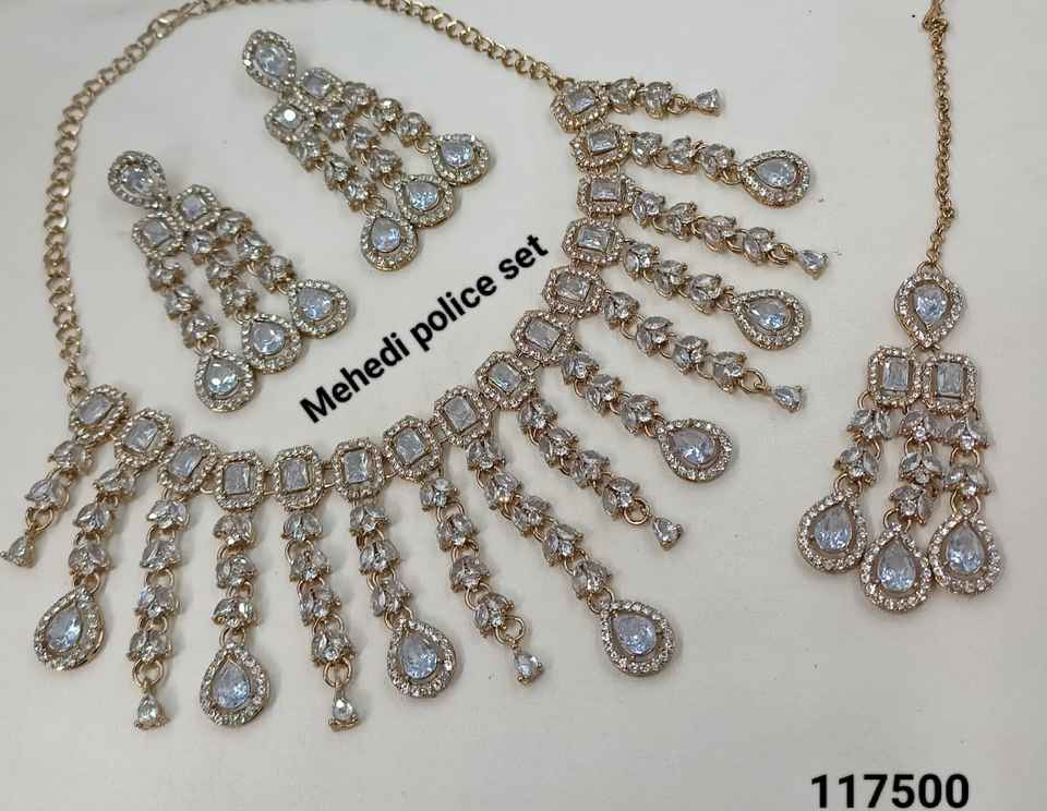 Antique Gold Plated Beautiful Stunning Cubic Zircon Crystal Dangle Drop Choker Wedding Necklace Jewelry With Earrings for Women
