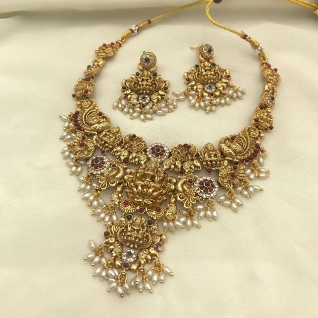 Antique Gold-Plated Brass Jewelry Set with Pearl Crop Women Girls Party Wedding Engagement Featuring Pearl Moissanite