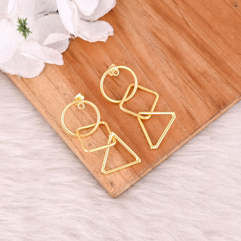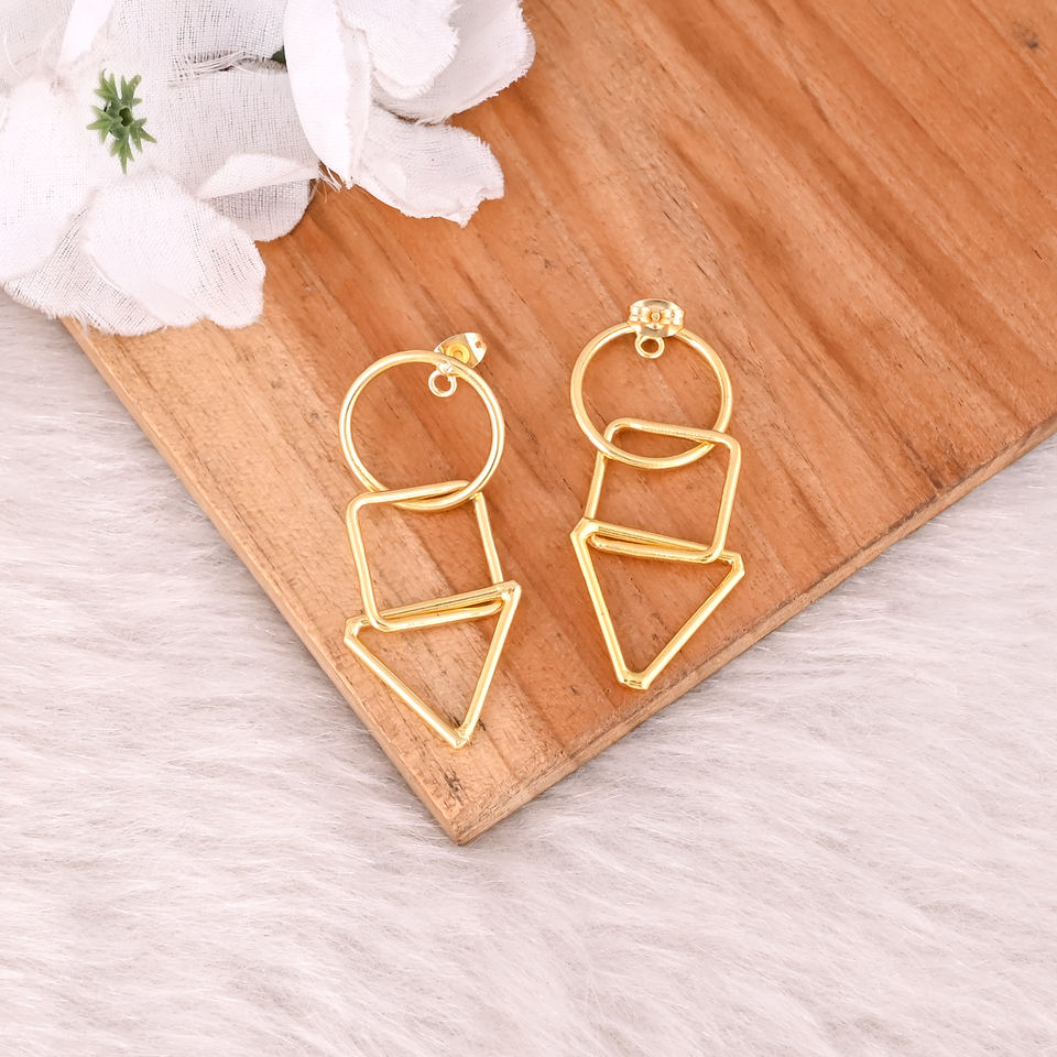 Antique Gold Plated Long Statement Stud Earrings for Women and Girls Made of Brass Jewelry for Anniversaries