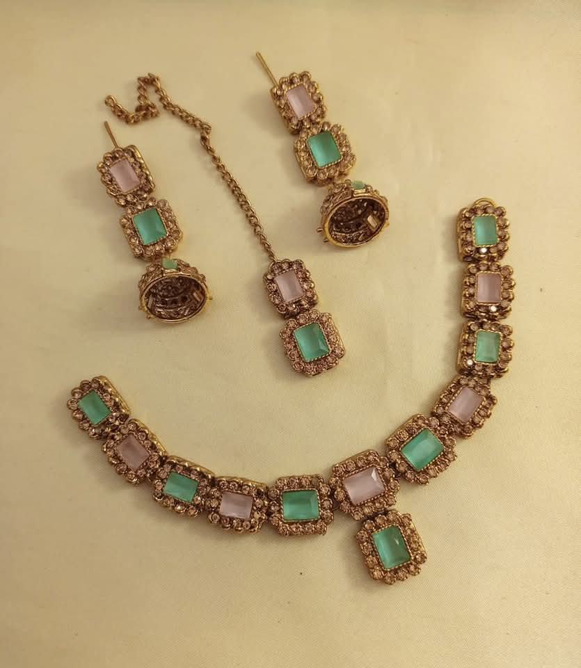 Antique Gold Plated Stainless Steel Artificial Jewelry Designs for Indian/Pakistani Wedding Women's Party Necklace Earring Sets
