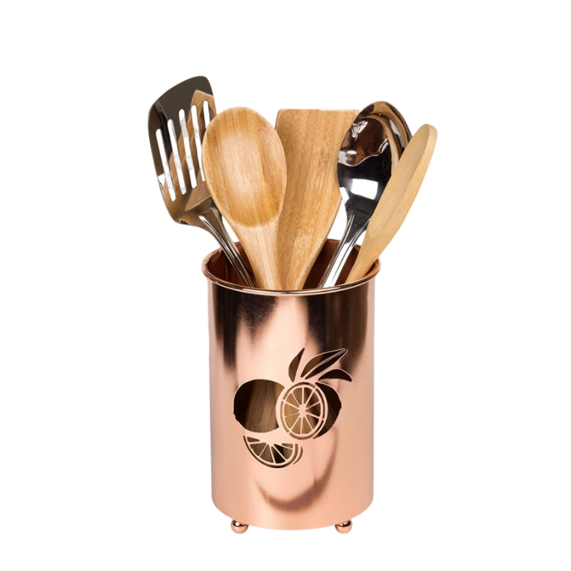 Antique Golden Metal Cutlery Holder Round Shape Utensil Caddy Flatware Organizer For Countertop Storage Holder