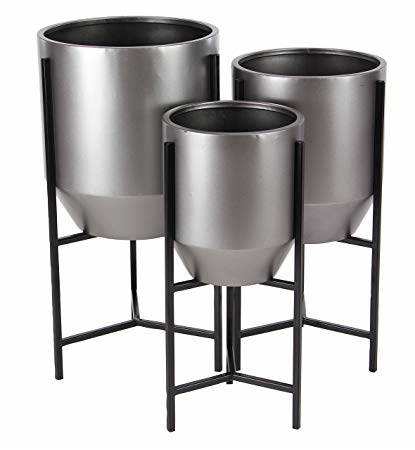 Antique Gray Color Metal Outdoor Planters Round Different Sizes Latest Decorating Planter With Black Iron Stand in Cheap Price