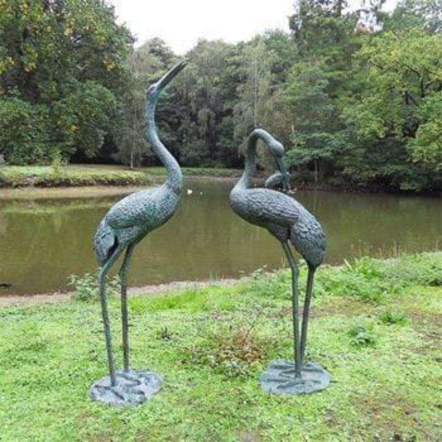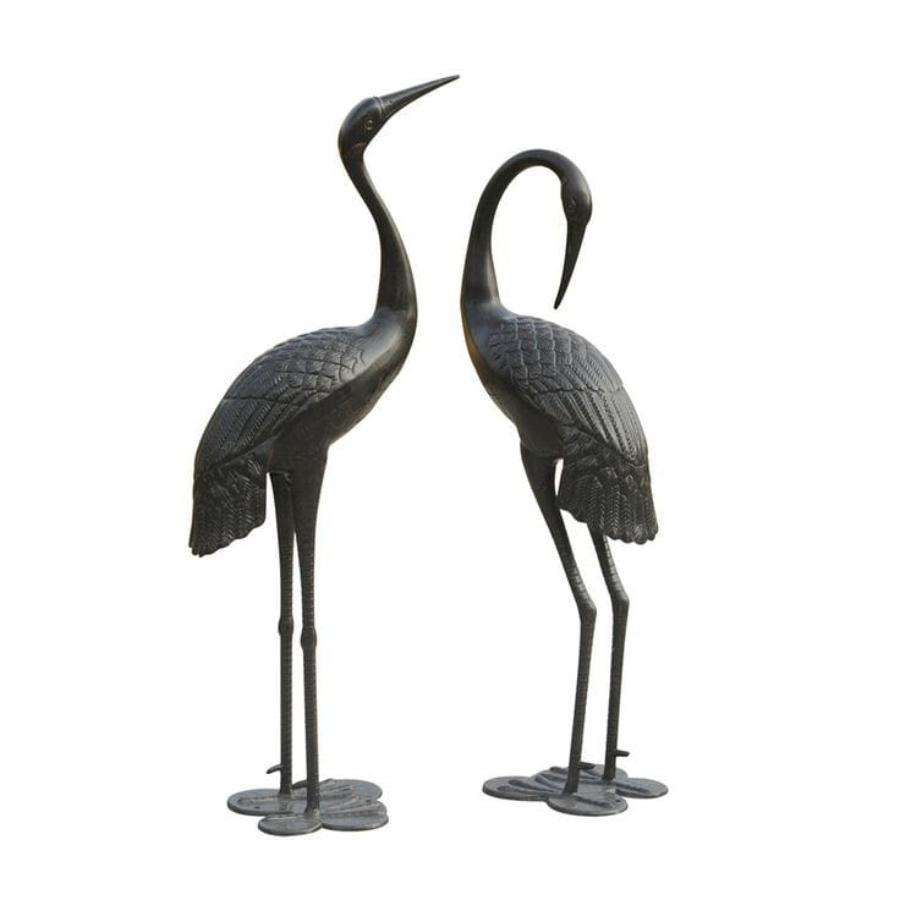 Antique Green Crane Statue Outdoor Decorative Figure Handicraft Cast Iron Pair of Life Size Free Standing Birds Sculpture