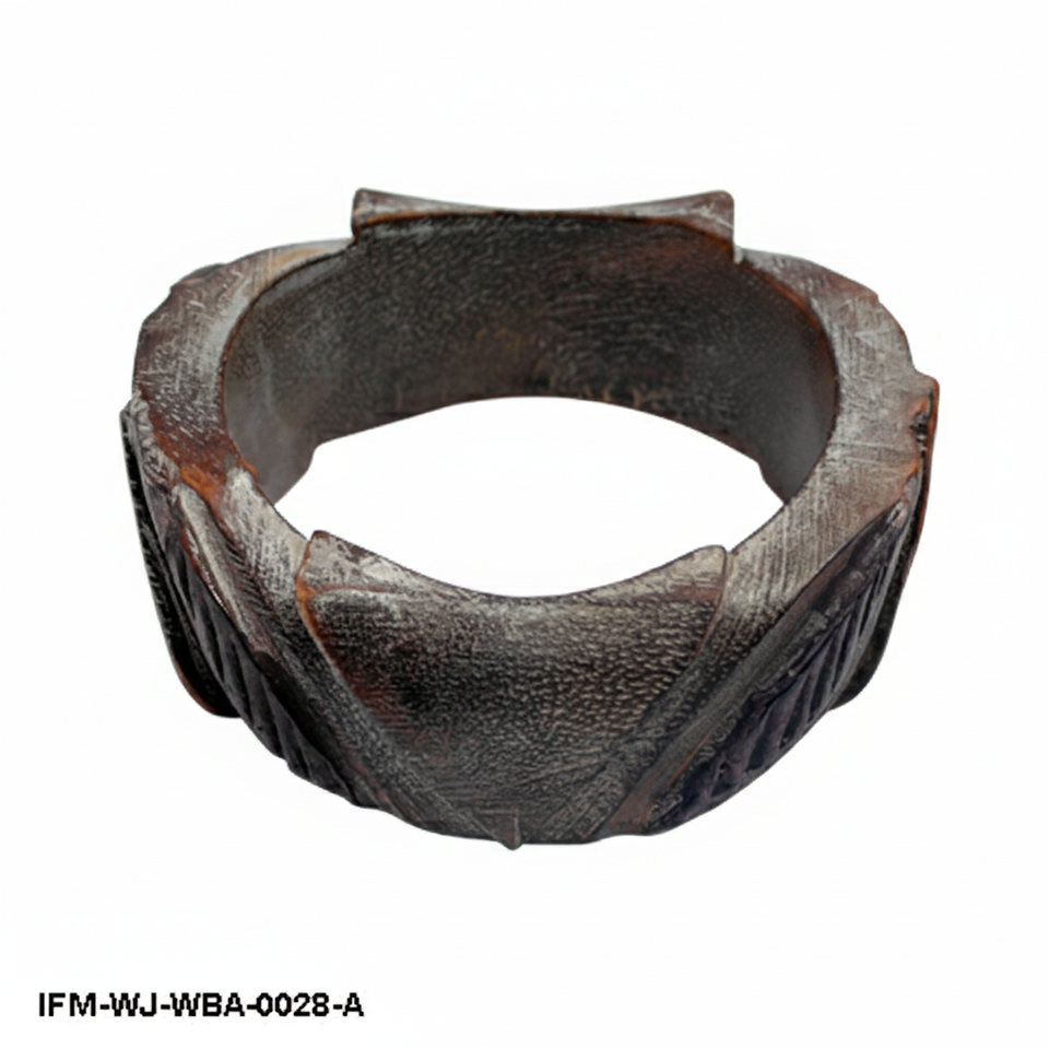 Antique Hand-Carved Wooden Tribal Bangle Chunky Bohemian Ethnic Statement Bracelet Gift For Her