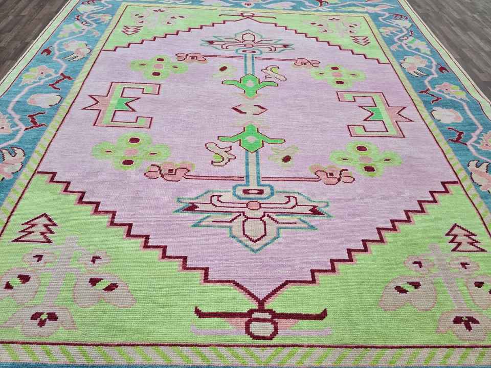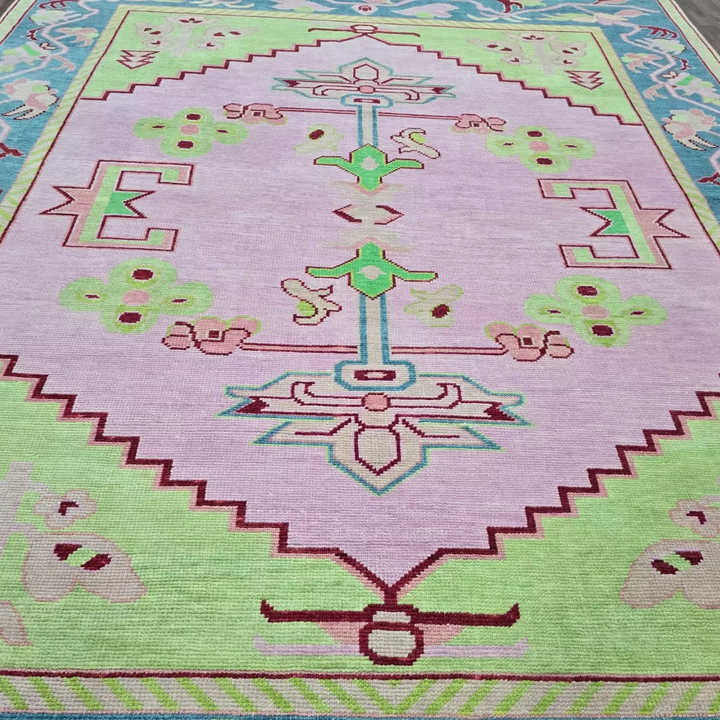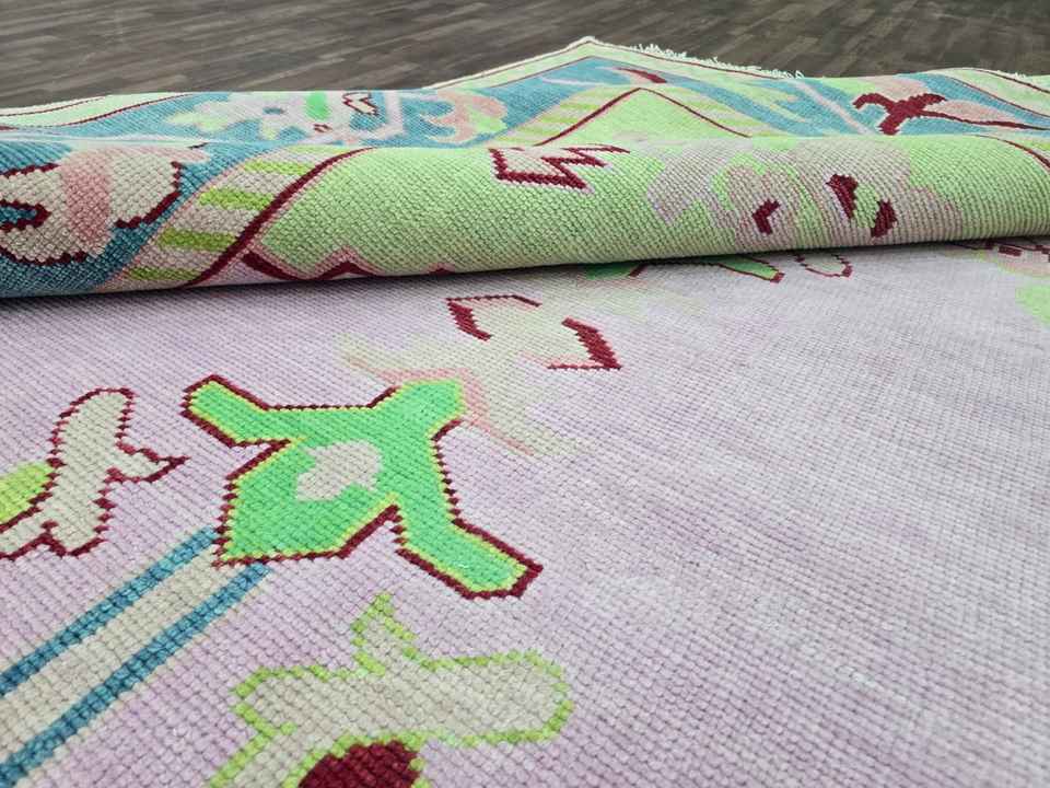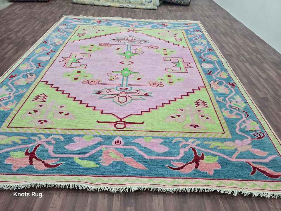 Pink Green Persian Rugs Handknitted Oushak Carpet