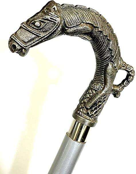 Antique Horse Head Handle Walking Stick 37 Inch Height Wooden Cane 3 Fold Easy Carry Style Man and Women's