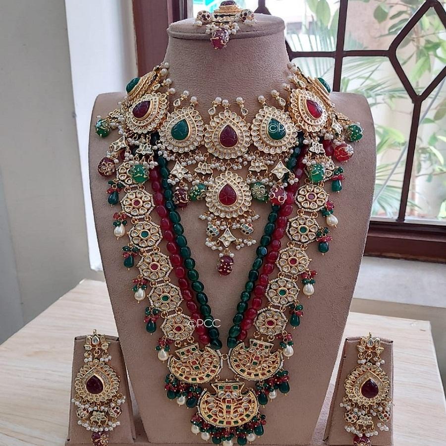 Antique Indian Wedding Bridal Big Kundan Stone Heavy Set with Choker Set and Long Earring and Mangtikka by M Creation