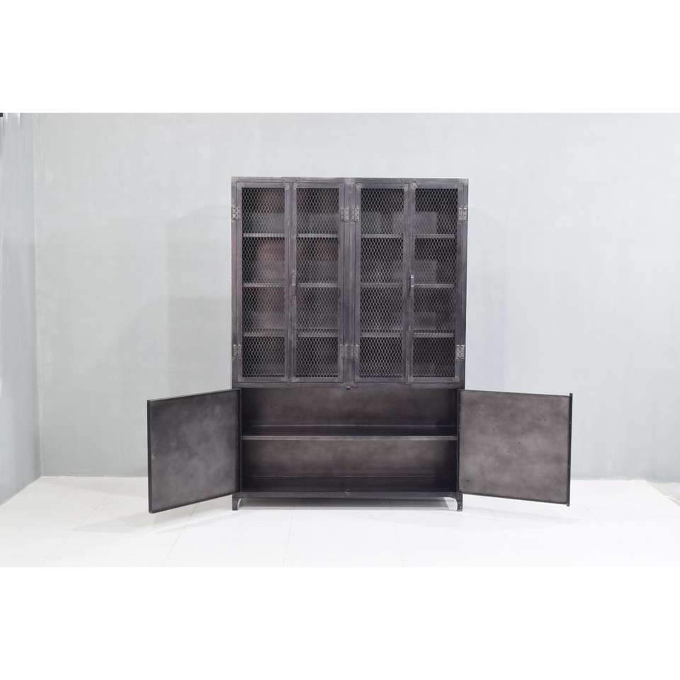 Antique Industrial Iron Mesh Door Almirah Home Furniture Metal Cupboard for Storage Display Home Office Warehouse Living Room