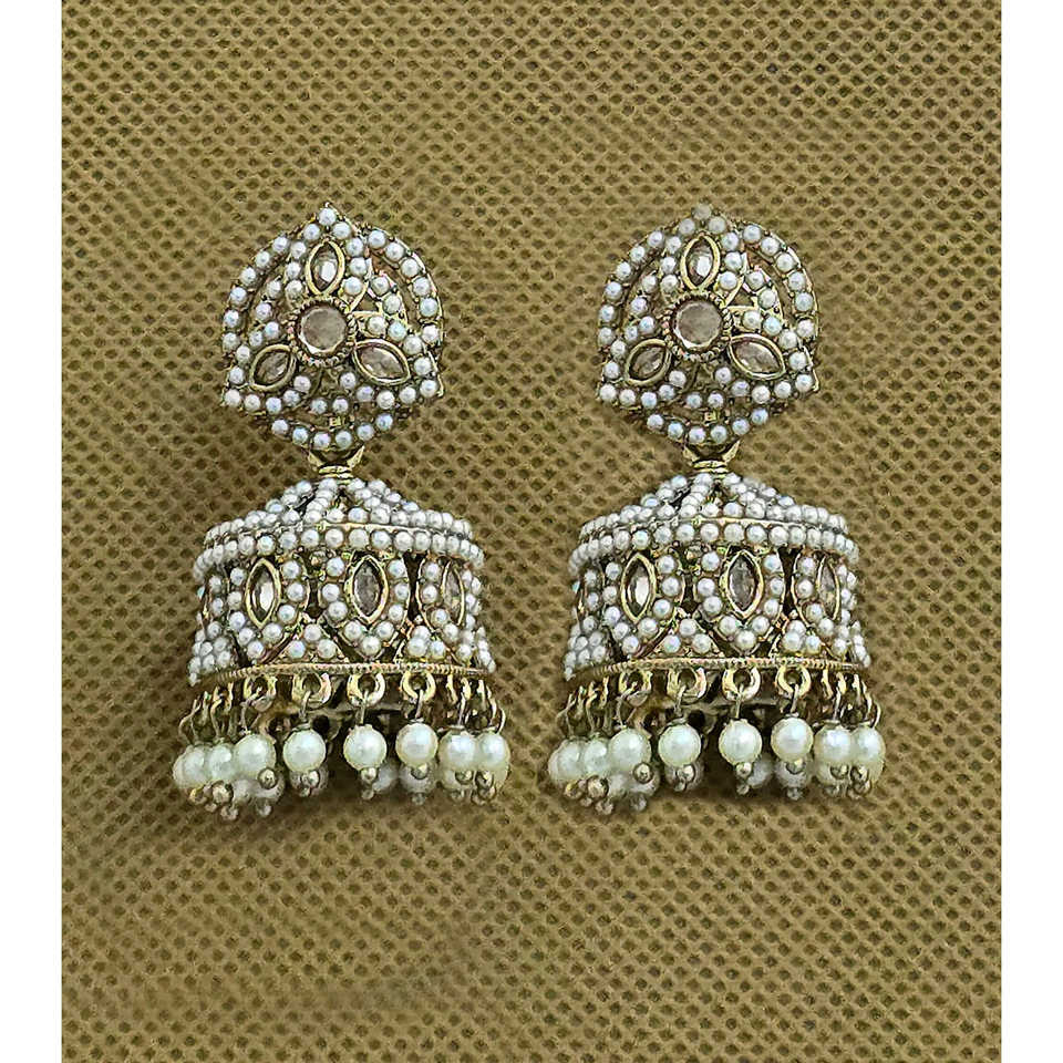 Antique Jhumki Pearl Earrings with Elegant Mehndi Plating