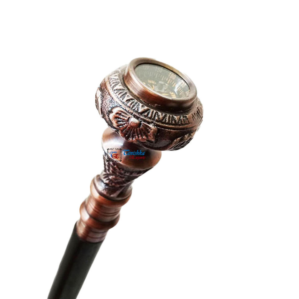 Antique Knob Compass Handle Art Deco Foldable Durable 95cm Walking Stick Vintage Black Wooden Brass Copper Home Decor