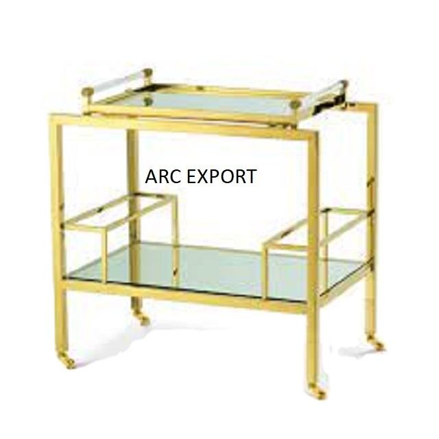 Antique Large Serving Trolley with Clear Metal 2 Tiers Unique Golden Metal Decoration for Tableware Use
