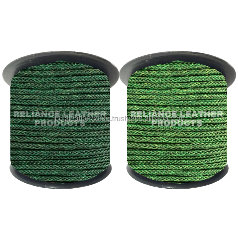 Antique Light Green 8-Ply Braided Square Leather Cords Custom Sizes & Colors for DIY Bracelets and Jewelry Components