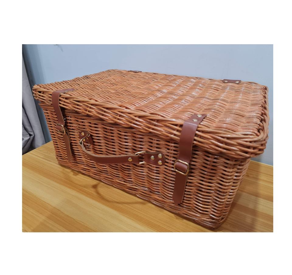 Antique Lined Bamboo Wicker Gift Basket for Wine Storage / Medium Rattan Wine Holder Basket With Leather Home Party Garden