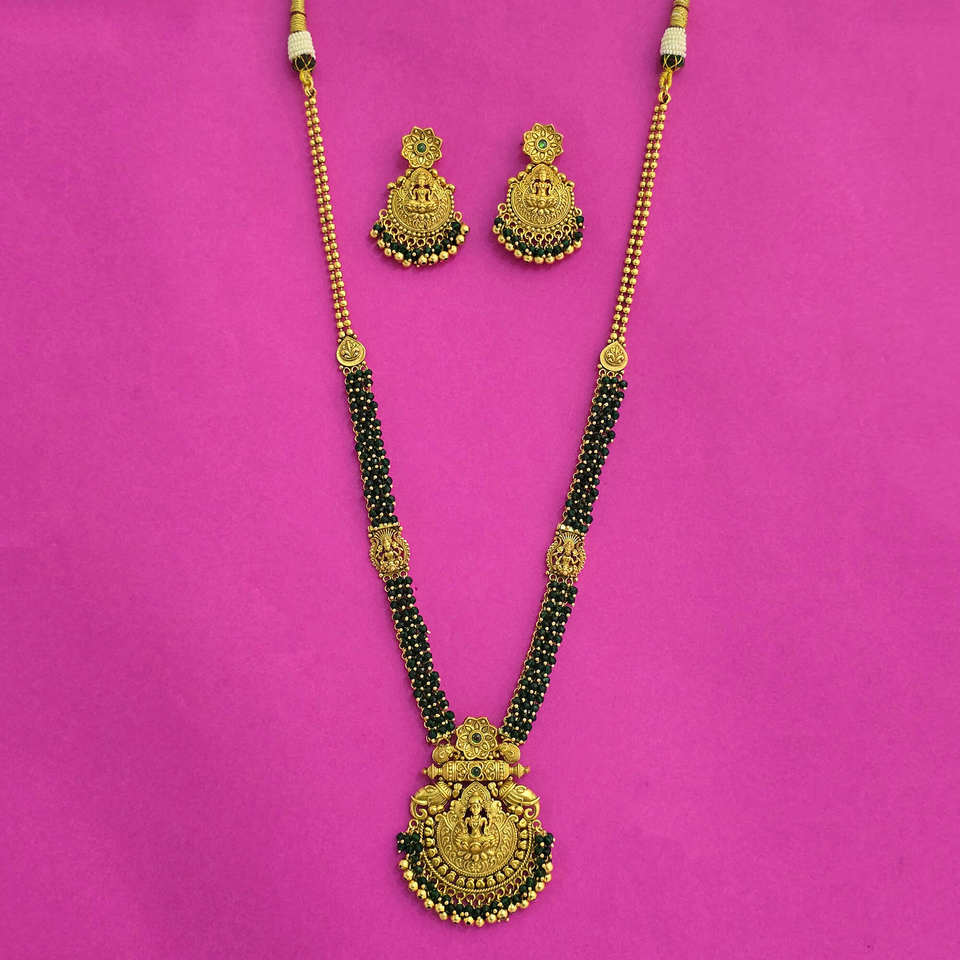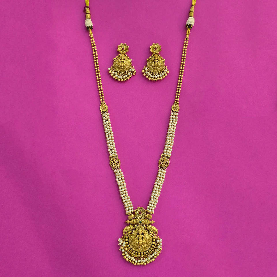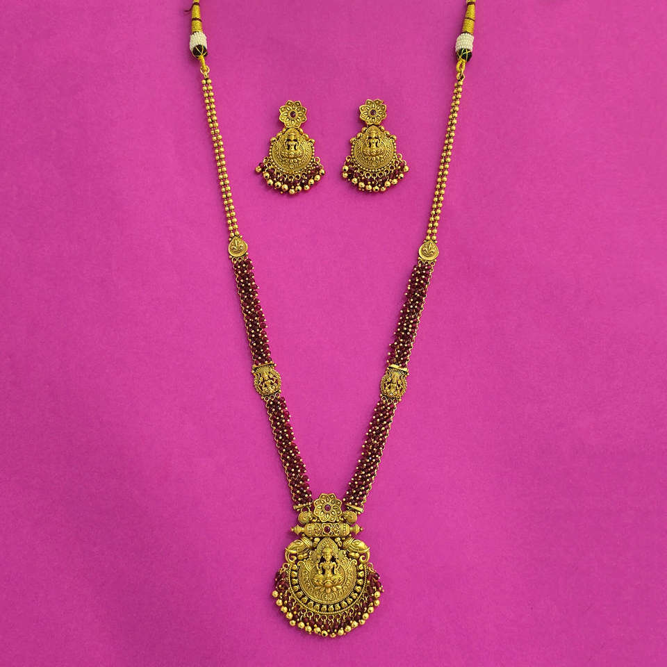 Antique Long Fashion Necklace with Matte Gold Plating Wholesale From India's Artificial Jewellers