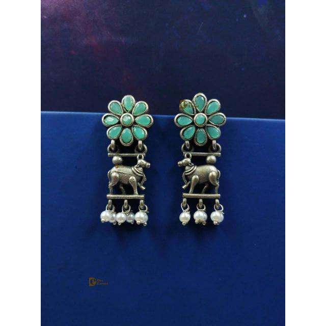 Antique-Look 2.6inch Brass Silver(Base) Flower Earrings Handmade Bulk Product with Pearl Oxidized Polish for Casual Party Wear