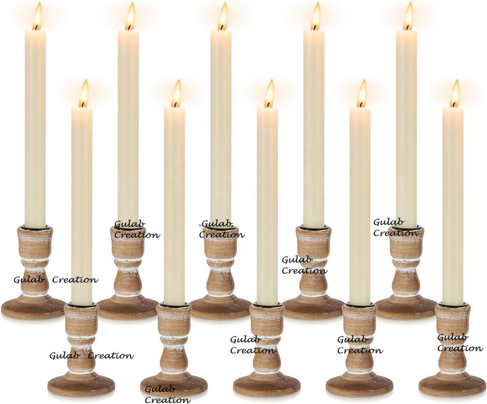 Antique-Look Wooden Candle Holders for Farmhouse Style Decor Rustic Pillar Candle Stands for Living Room and Tabletop Decoration