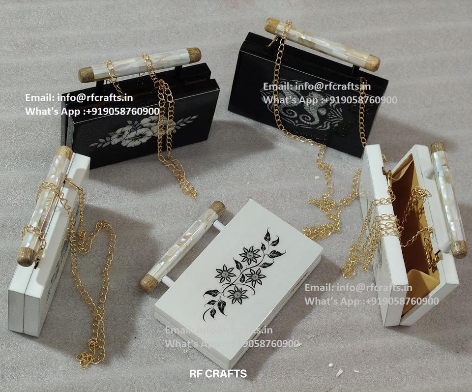 Antique Luxury Handcrafted Women's Wooden Clutch with Vintage Geometric Mother Pearl Inlay Custom Brass Agate Clutch Lady Style