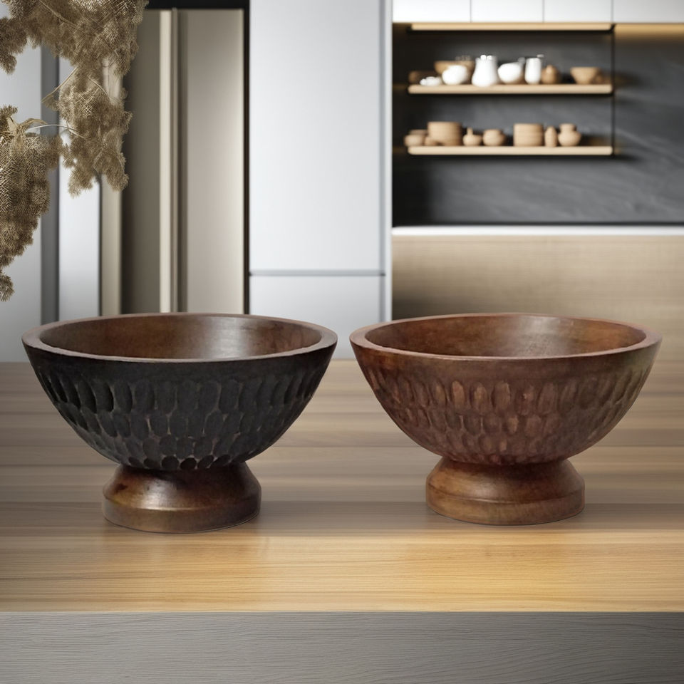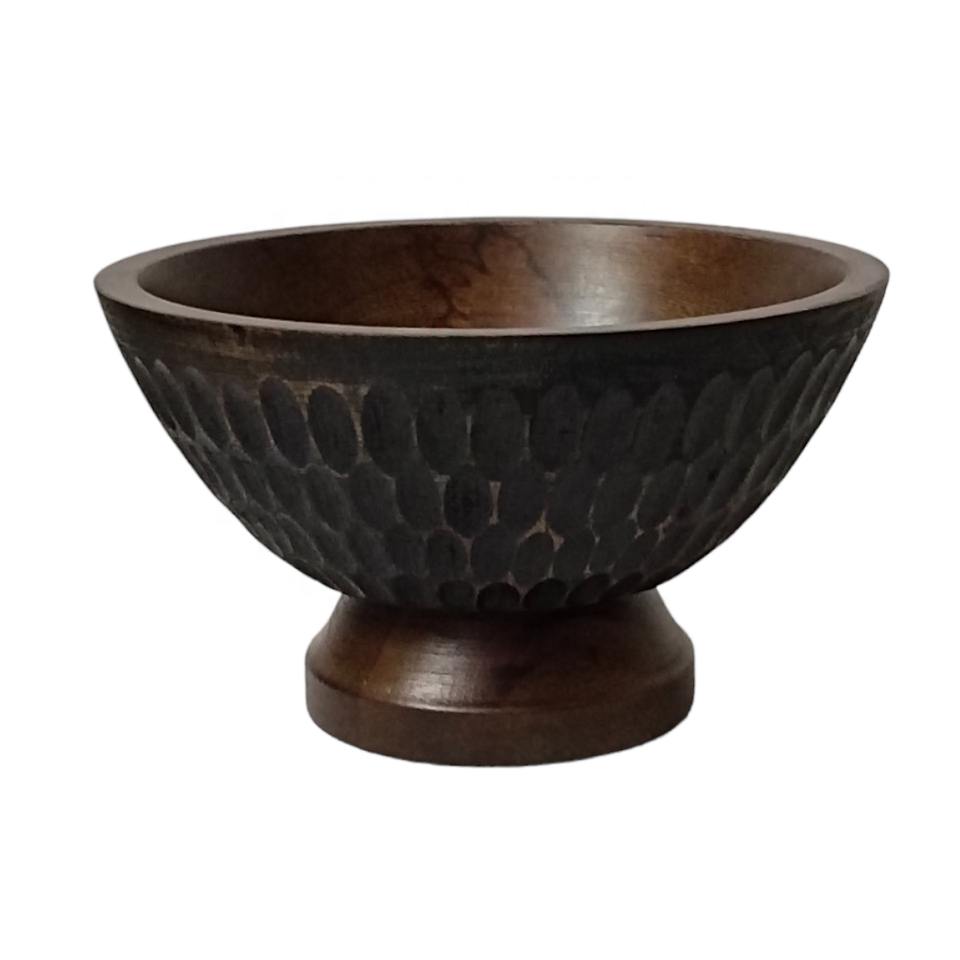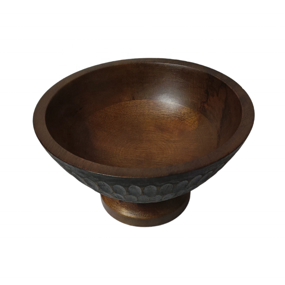 Antique Luxury Mango Wood Salad Serving Bowl Natural Brown Unique Hand-Carved Texture for Farmhouse Kitchen Table Party