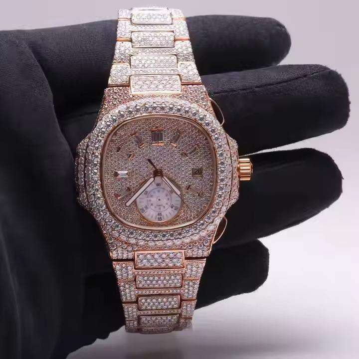 Antique Luxury Sport Men's ETA Mechanical Analog Watch 20mm Wide Stainless Steel Band Customized High Quality Iced VVS