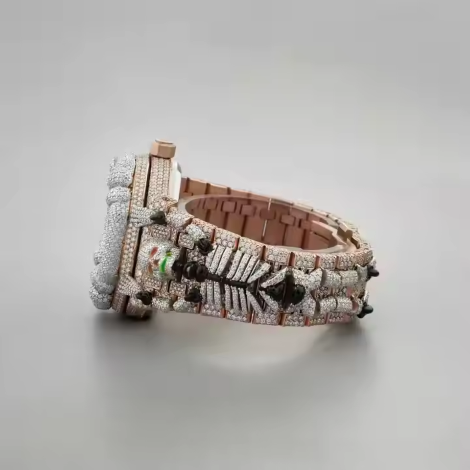 Antique Luxury Moissanite 41mm Dial Uniquely Designed Vintage Skull Diamond Watch Charm 21mm Band Width Quartz Movement