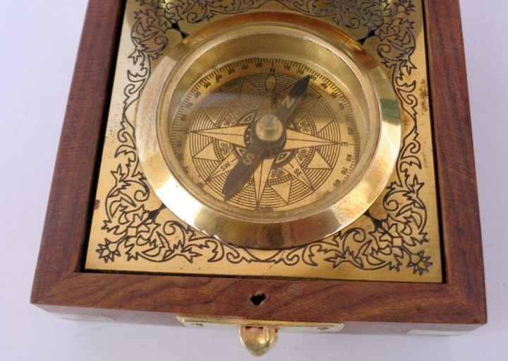 Antique Maritime Brass Compass in Box Vintage Nautical Decor Item Use As Decoration for Living Room