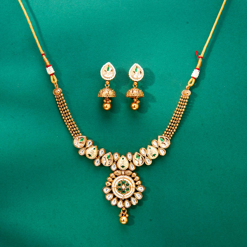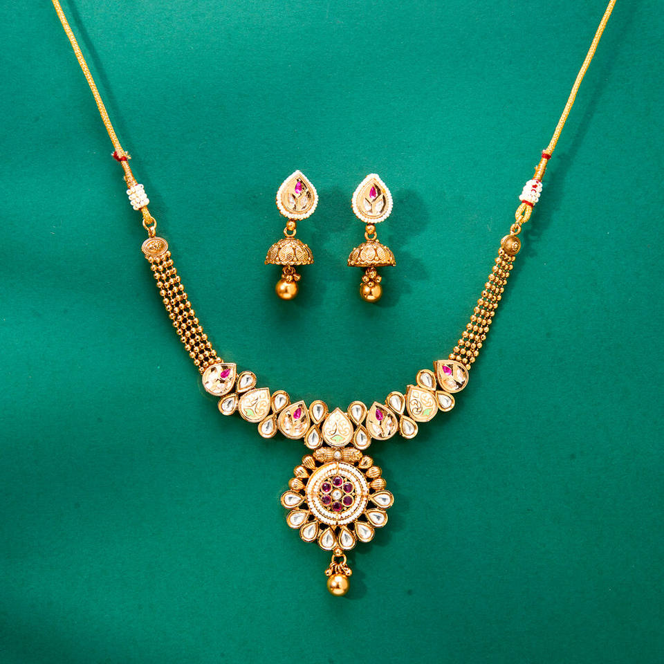 Antique Meenakari Necklace Set Matte Gold Plated South Indian Style Fashion Necklaces