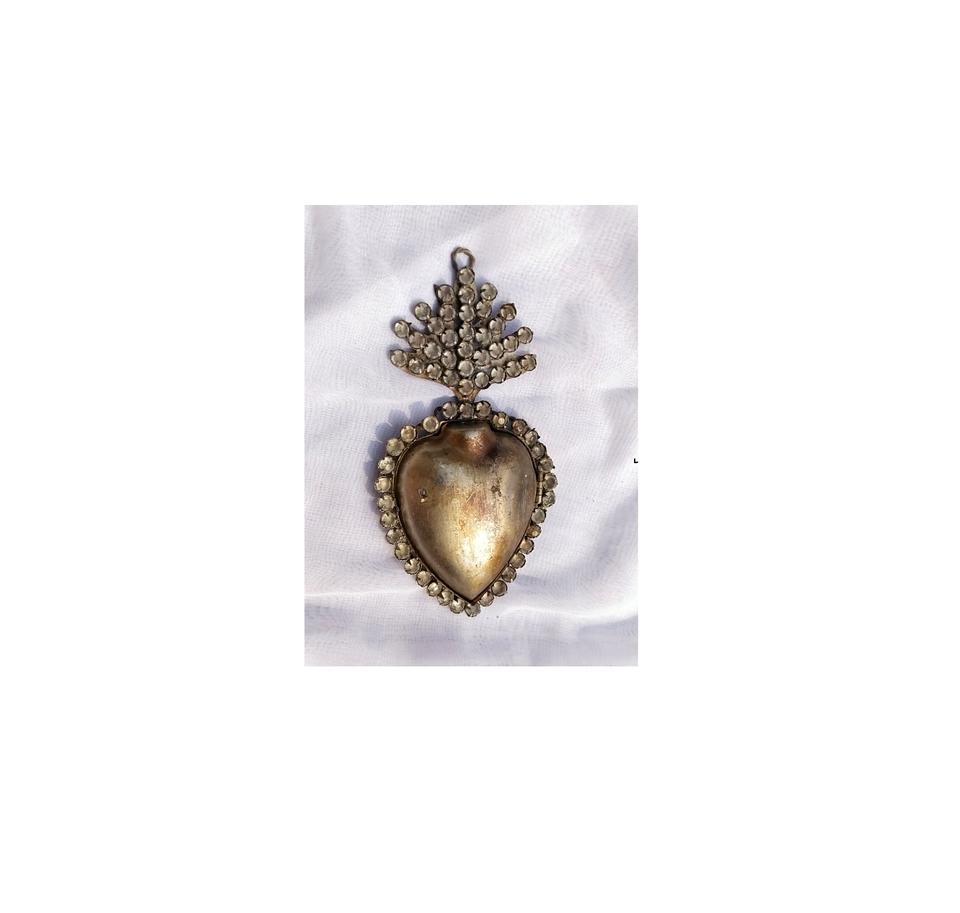 Antique Metal Magnificent Sacred Heart Pair Milagros Ornament Great Catholic Lover Gift First for Communion