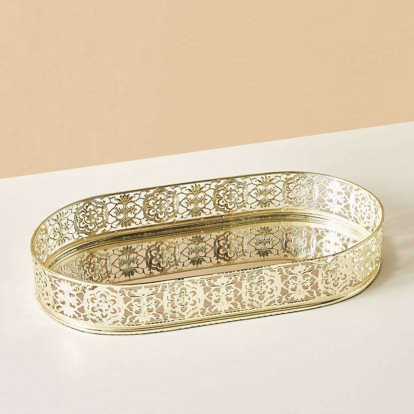 Antique Metal Serving Tray Handmade High Quality Light Weight Fancy Oval Shape Unique Table Top Storage Home Organization