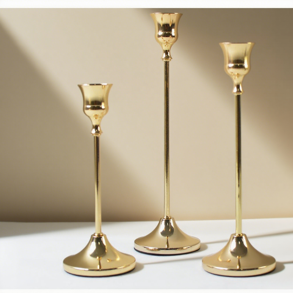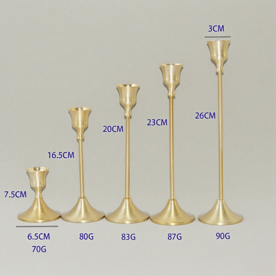 Antique Minimalist Brass Long Stemmed Tapered Candle Holder Stick Set Holders Decorative Gold Candlestick Holder