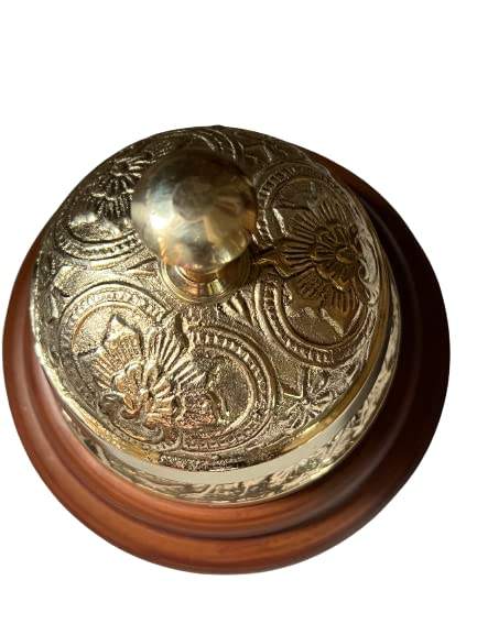 Antique Modern Style Brass Table Bell Wooden Base Wheel Design Premium Quality Plated Technique R HANDICRAFT Brand Business Gift