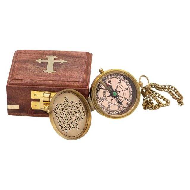 God's Way Solid Brass Engraved Compass Psalm 32:8 Bible Verse Baptism Communion Confirmation Christian Gift for Boys & Men