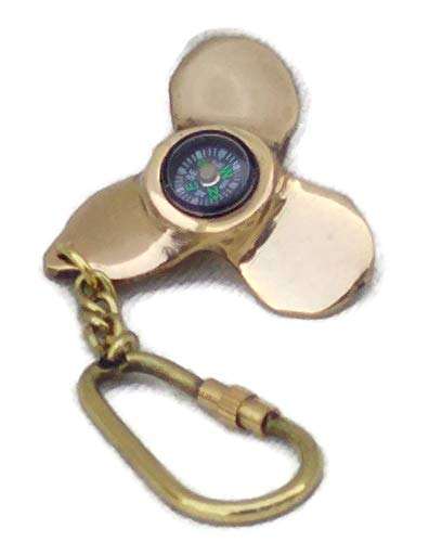 Antique Brass Keychain W/ Compass Propeller Fan Gold-Plated Key Ring for Car Bike Cycle Home Birthday Parties Metal Crafts Gift