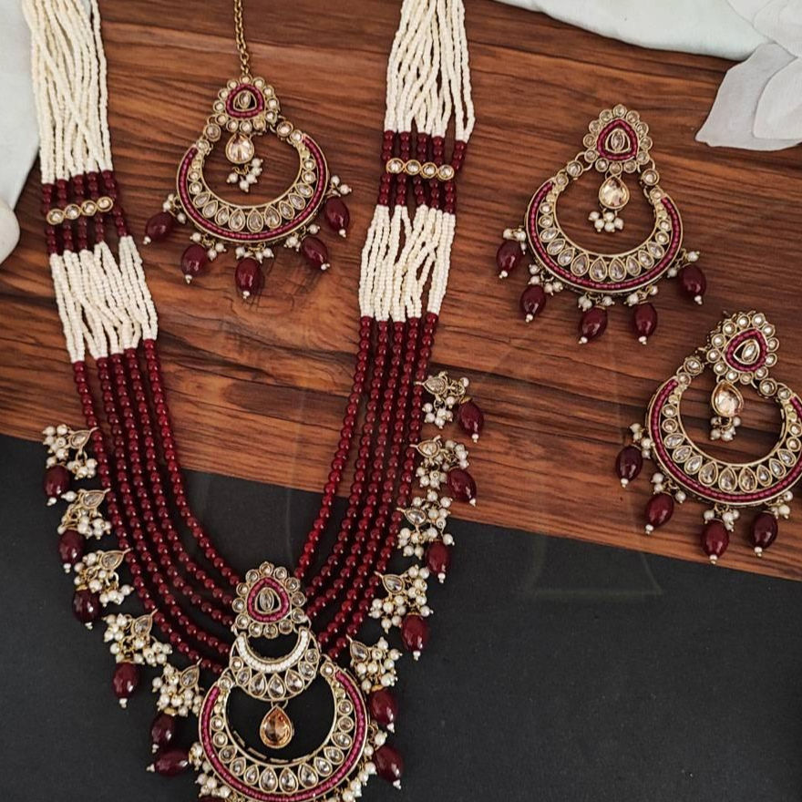 Antique Necklace Jewelry Sets Mehendi Polish Design Beautiful Long Beaded Style Party Wear Designer Wear Antique Necklaces Set