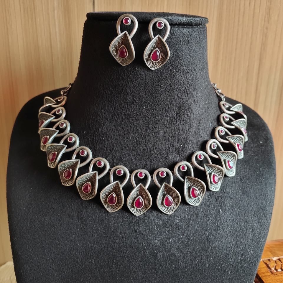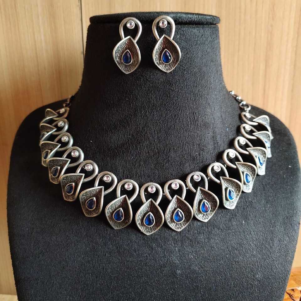 Antique Oxidised Silver Statement Necklace with Earrings for Wedding and Party Wear Fashion Jewelry Sets