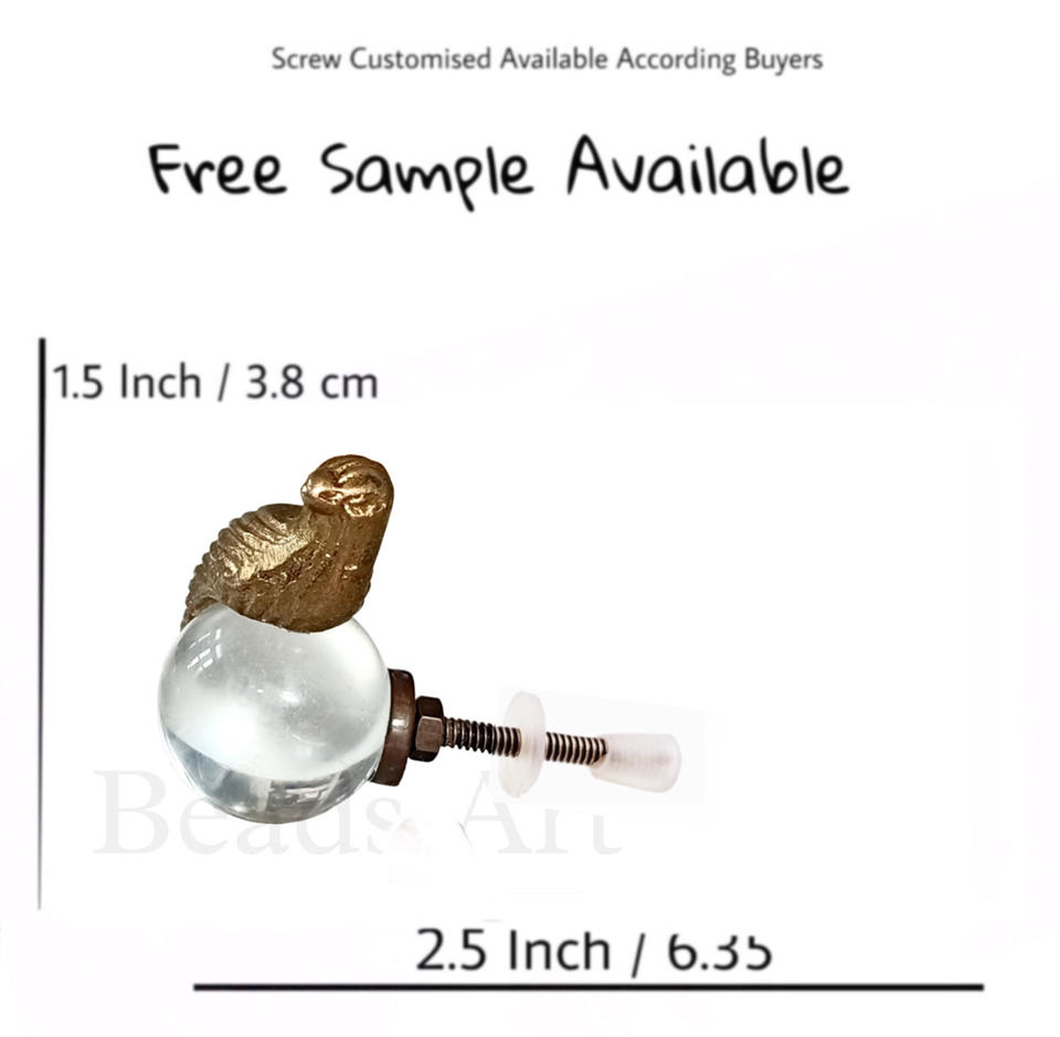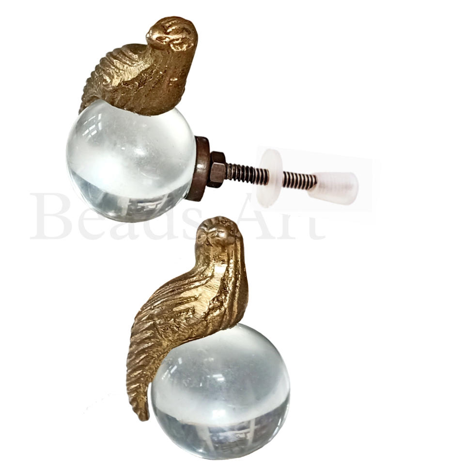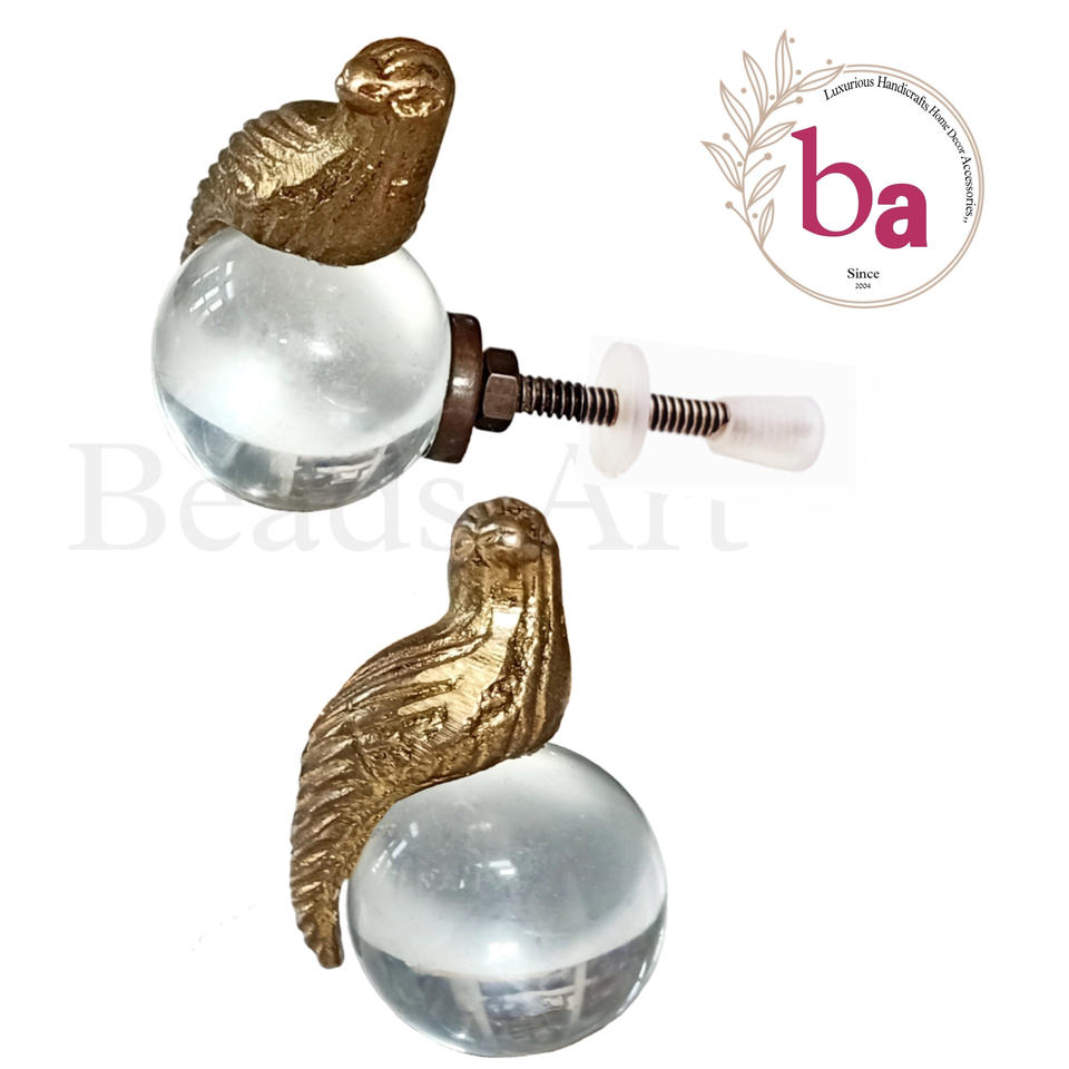 Antique Perched Bird Knob Crystal Glass and Brass for Kitchen Cabinets Dressers Wardrobes or Bathroom Drawers Pull Handle