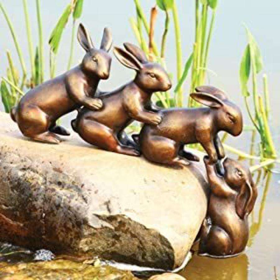 Antique Rabbits Garden Ornaments Decorative Models Farmhouse Lawn Supply Rabbit Sculpture Metal Handicrafts