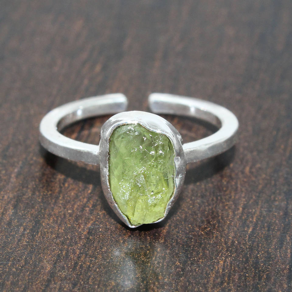 Antique Real Rough Peridot August Birthstone Healing Crystals Ring Silver Plated Jewellery Girls Women Wholesale Bulk India