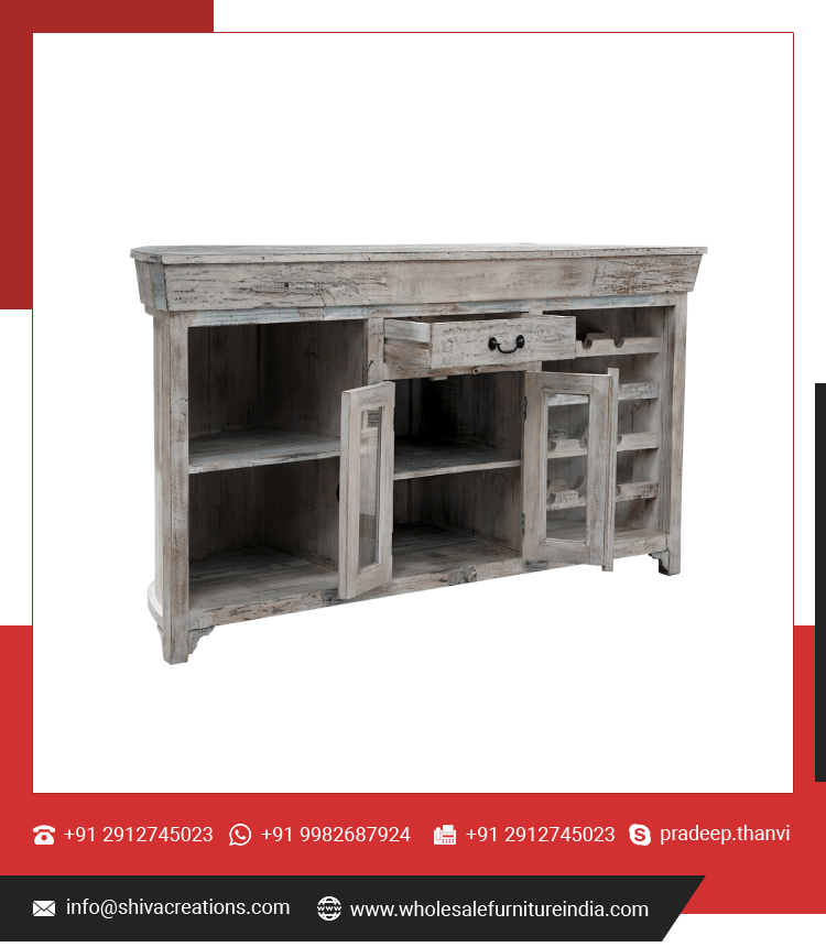 Antique Reclaimed Wood Bar Counter Cabinet Elegant Outdoor Living Green Furniture 2-Doors 1-Drawer for Bedroom Home Furniture