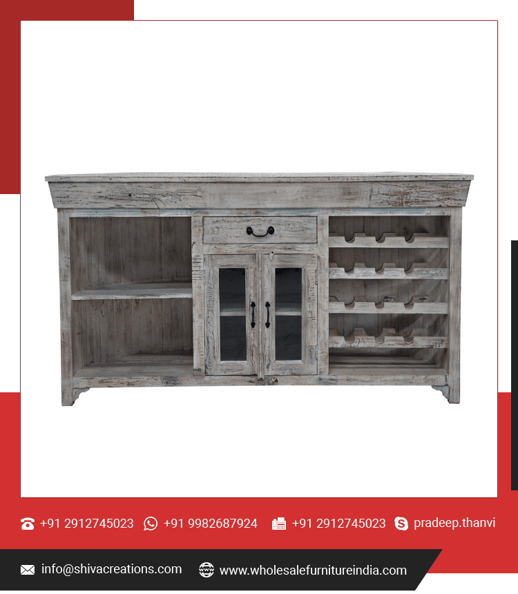 Wooden 2 Door 1 Drawer Bar Counter Cabinet
