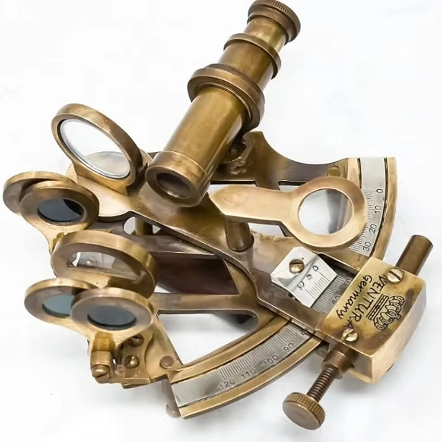 Antique Reproduction Brass Sextant Astrolabe | Polished Maritime Nautical Celestial Instrument for Marine Navigation & Decor