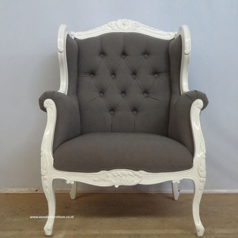 Antique Reproduction Wing Chair Sofa Wooden Frame Carved to Furnish French Style Living Room and European Home Furniture