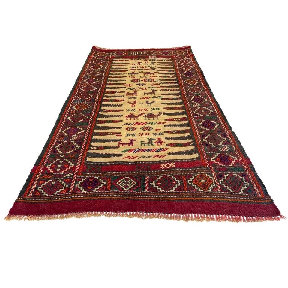 Antique Rug Jajum Sumak Kilim Handwoven Wool Carpet for Home Decor Traditional Western Iran
