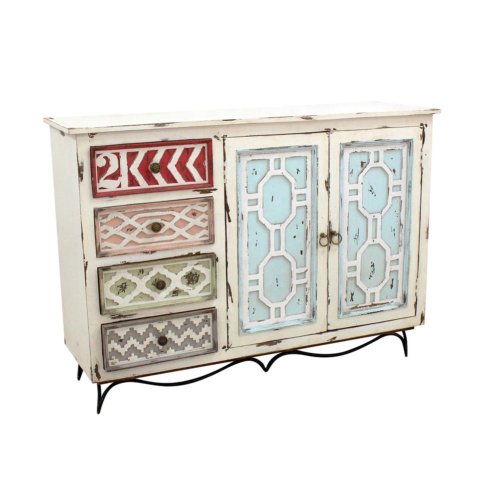 Antique Rustic Distressed French Sideboard CNC Carved Doors Drawers Vintage Shabby Chic Buffet Cabinet Large Storage Server