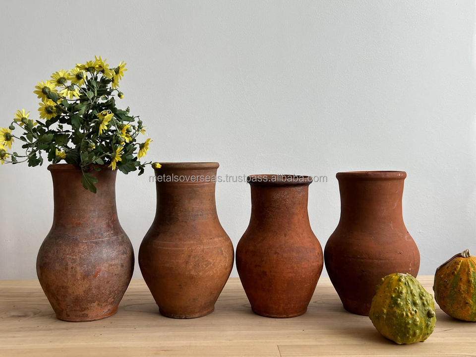 Antique Rustic Hand Carved Terracotta & Clay Vase Durable for Bohemian Home and Garden Decor Vintage Style