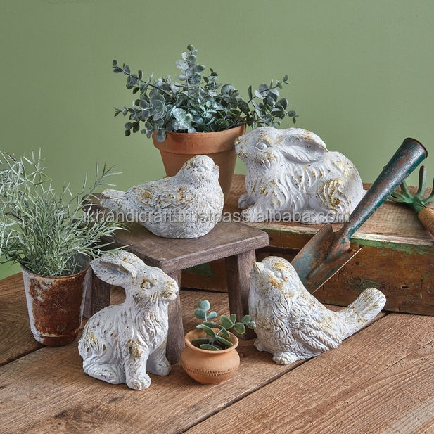 Antique Rustic Small Bird Bunny Figurine Customised Cast Iron Garden Ornament for Farmhouse Home Decor Fresh Resin Tabletop