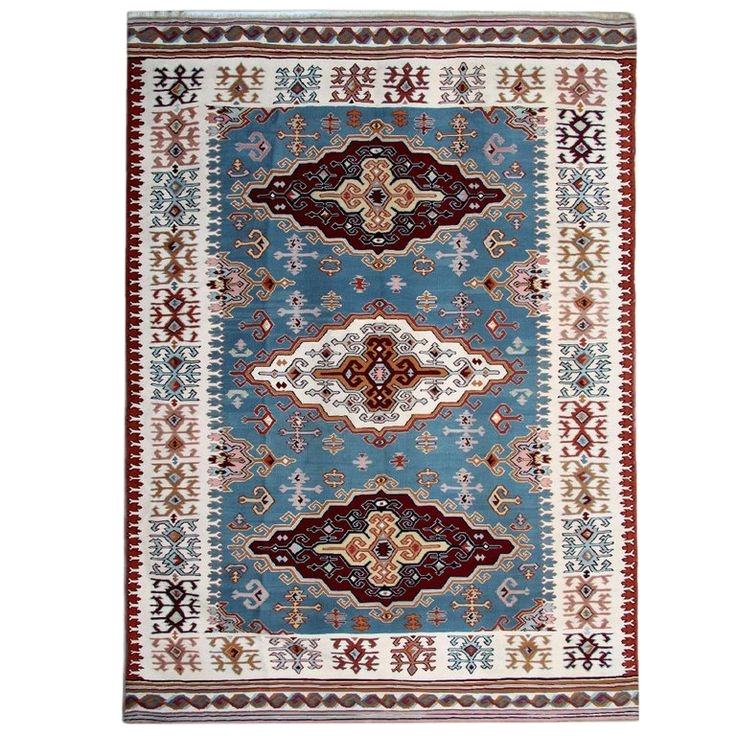Antique Serbian Kilim Dhurrie Rug Handmade Flat-Woven Wool Carpet with Vintage Geometric Oriental Design