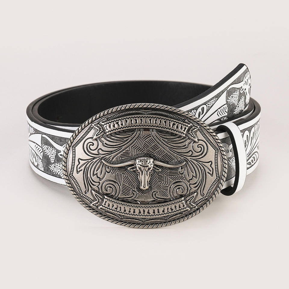Antique Silver Cow Head Carved Western Style Wide Genuine Leather Belt for Women with Alloy Buckle Direct From Pakistan