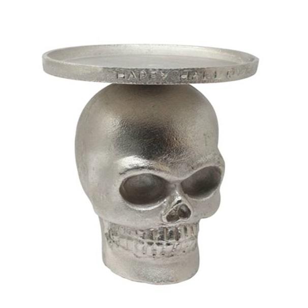 Antique Silver Metal Skull Candle Holder Stand Eco-Friendly Gothic Pedestal with Tiered Horror Centerpiece for Table Altar Decor