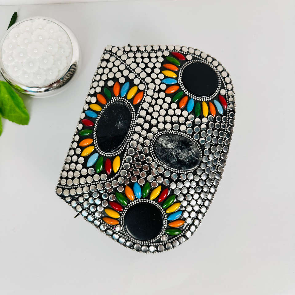 Antique Silver Rainbow Style Metal Shoulder Bag Hand-Crafted Modern Polished Sculpture Sling Purse Vintage for Girls and Women